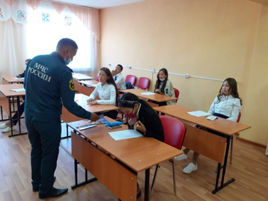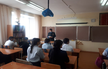 6 октября 2020 года был проведен беседа для 8-х классов с целью повышения познавательного интереса обучающихся к этому предмету, практическую отработку действий в условиях различных ЧС, знакомство с работой пожарных и спасателей и привлечение внимания общественности к проблемам детской безопасности совместно сотрудником ПСЧ № 10. Охват 41.